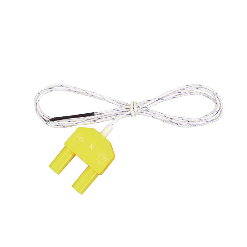 Датчик имеет соед. коннектор «вилка» («банан» в изоляции/ 4 мм) для подключения на вход любых мультиметров и универсальных вольтметров с функцией измерения температуры (вх. гнезда 4 мм/ «мама»).