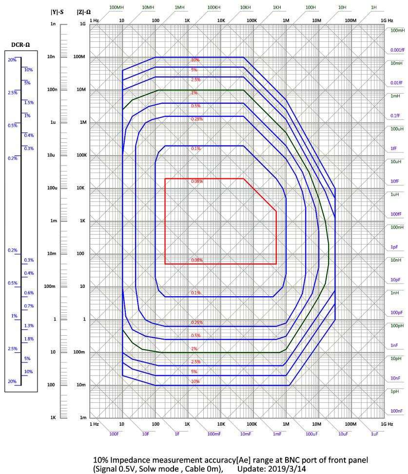 | Измеряемые параметры | импеданс (|Z|/ R), фазовый угол (θDEG/ θRAD), индуктивность (Ls / Lp), ёмкость (Cs / Cp), активное сопротивление (Rs / Rp), ЭПС (ESR), добротность (Q), коэф. диэлектрических потерь (D), полная проводимость (Y), активная проводимость (G), реактивная проводимость (B), реактивное сопротивление (X), измерения сопротивления на постоянном токе (Rdc) |