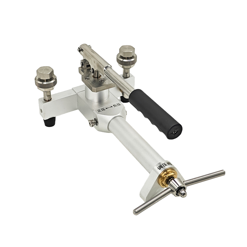 Насос при калибровке управляется вручную, создает испытательное давление и вакуум. Модель имеет диапазон пневматического давления: -0,095 ~ 6,10 МПа.