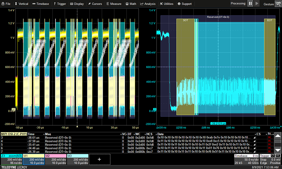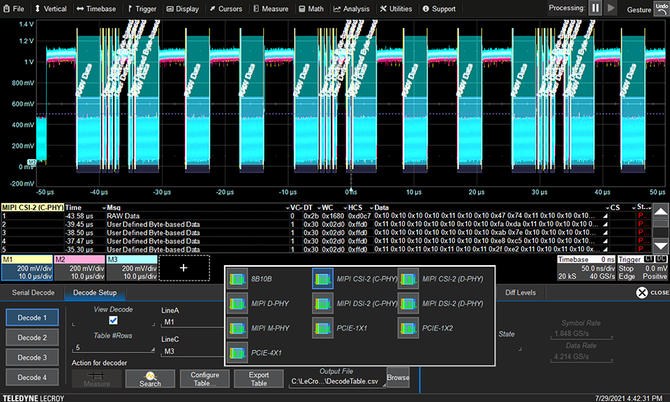 Декодирование последовательных сигналов CSI-2 и CSI-2 по MIPI C-PHY