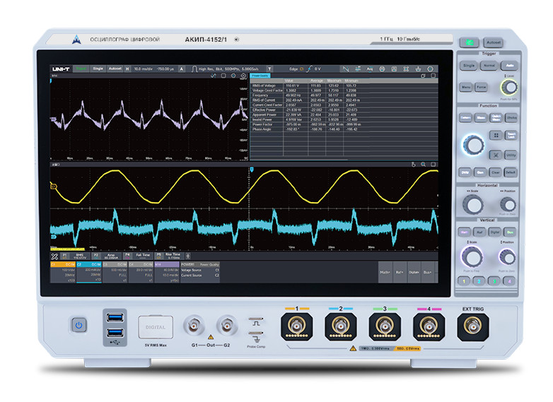 Серия АКИП-4152 представляет собой осциллографы с полосой пропускания до 2 ГГц и частотой дискретизации до 10 Гвыб/с. Применяется уникальная технология UltraAcq®, повышающая скорость захвата сигнала до 800 000 осц/с. Приборы поддерживают множество расширенных функций измерений и анализа, а также до 48 видов автоматических измерений параметров. Оснащены 64-разрядной операционной системой Win10, предоставляющей пользователям стабильную и расширяемую системную платформу. Используется 15.6" емкостной сенсорный экран с поддержкой многооконного режима и мультисенсорного управления жестами. Могут широко применяться в различных отраслях и областях, таких как связь, авиакосмическая промышленность, образование и многих других.