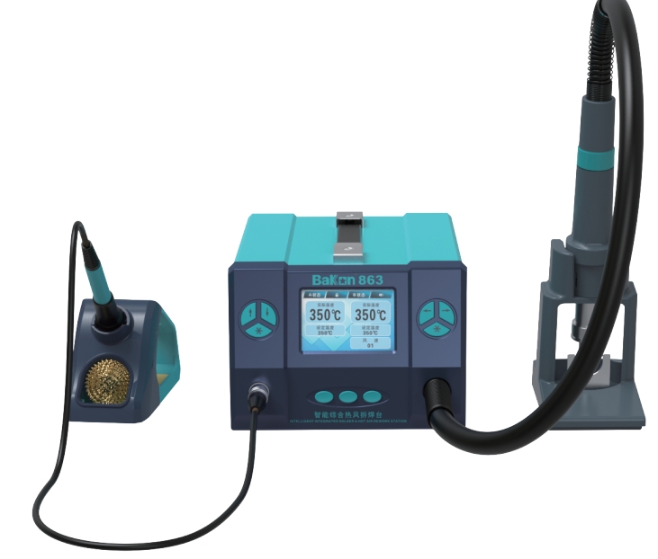 Станция оснащена функцией автоматического охлаждения большим объемом воздуха для продления срока службы нагревательного элемента и защиты ручки подачи горячего воздуха