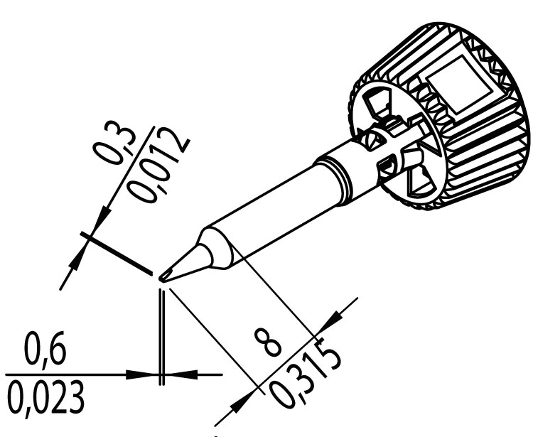 конус, на конце клин, ширина 0,6 мм, толщина 0,3 мм