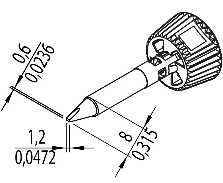 конус, на конце клин, ширина 1,2 мм, толщина 0,6 мм