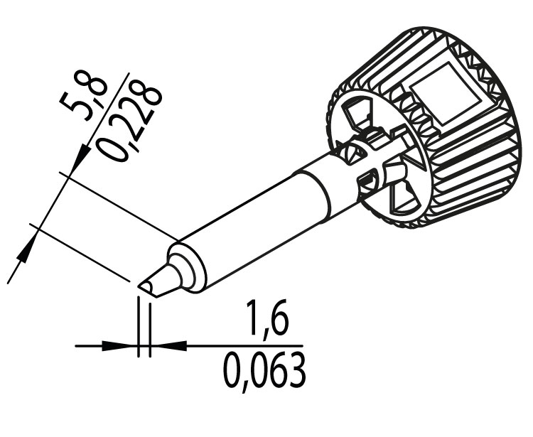 в форме долота, асимметричный конус, ширина 1,6 мм