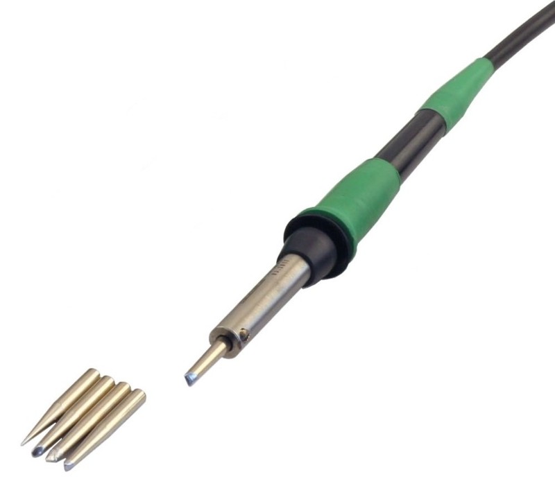 Паяльник ПРЦ-90 использует классические цилиндрические паяльные насадки. Насадка фиксируется в паяльнике с помощью бокового стопорного винта