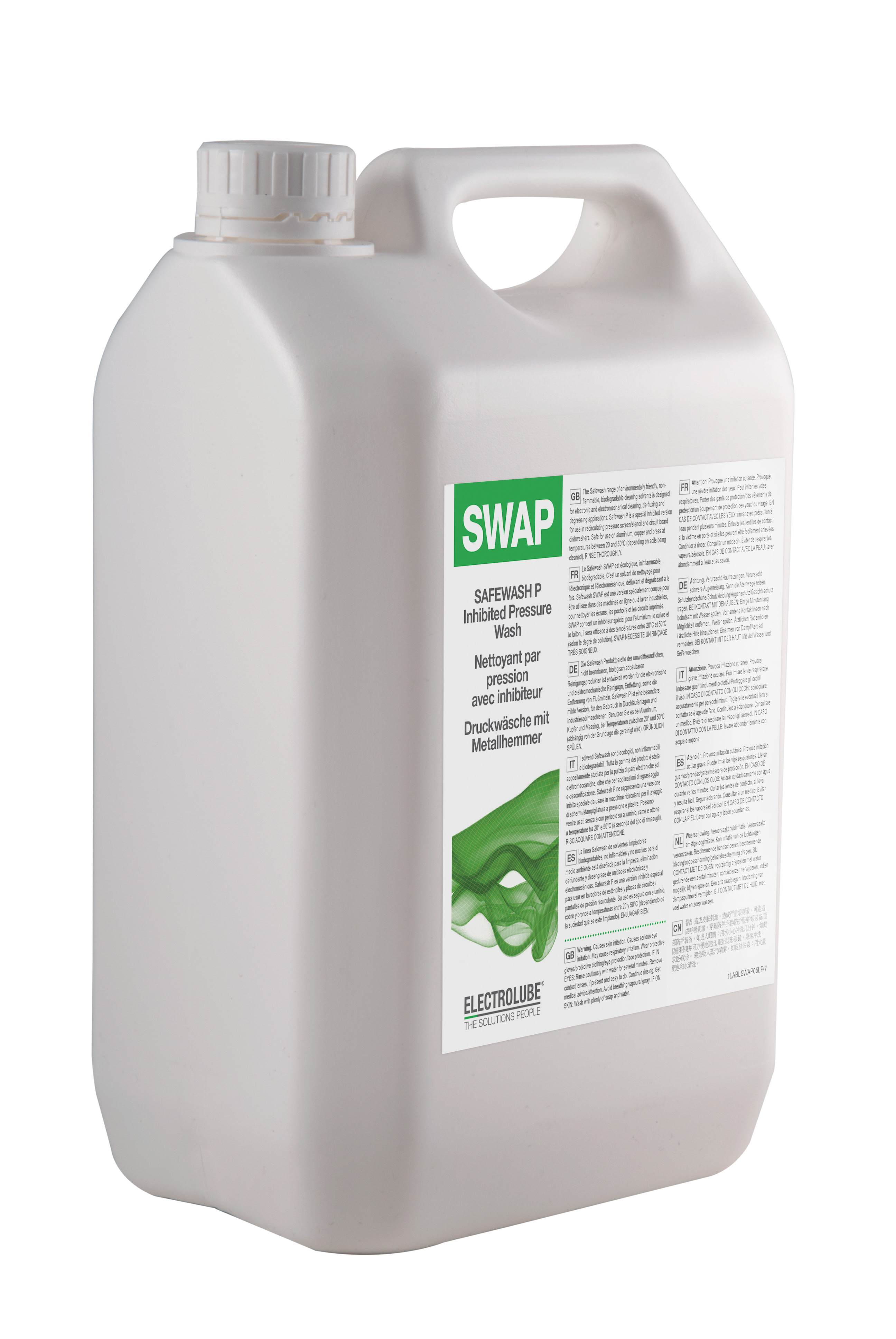 SWAP является частью ассортимента Electrolube Safewash: не воспламеняющиеся на водной основе, биоразлагаемые смеси растворителей, предназначенные для очистки в соответствии с военными стандартами чистоты (ANSI-J-001B / IPC TM-650)