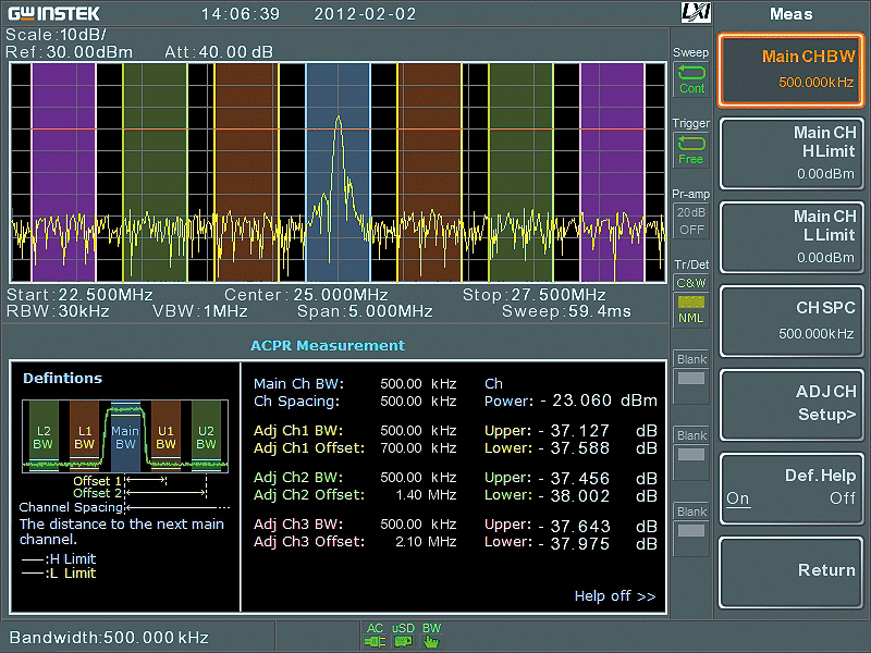 Измерение мощности в канале и соотношение мощностей в смежных каналах, измерение полосы по уровню, анализ модуляции