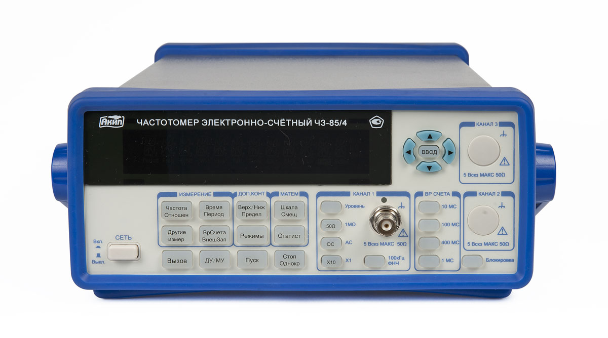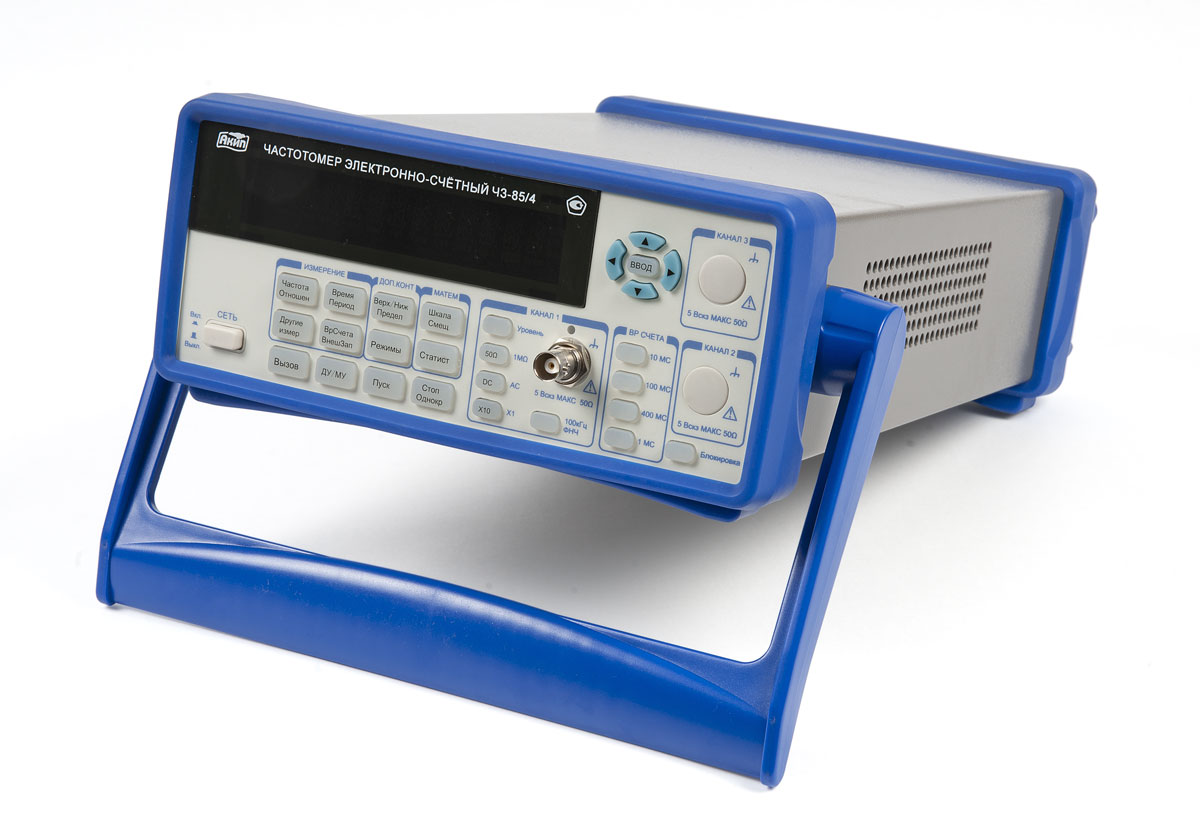 Электронно-счетные частотомеры Ч3-85/4, Ч3-85/5, Ч3-85/6, Ч3-85/7, Ч3-85/8 построены на сверхбольших интегральных схемах и технологии ПЛИС.При выполнении частотных измерений по каналу 1 обеспечивается статистическая обработка результата измерения: среднее, минимальное, максимальное и относительное значения, СКО, девиация Аллана. Частотомеры имеют встроенный кварцевый генератор с тактовой частотой 10 МГц, а также вход для подключения внешнего источника тактовой частоты 5 МГц или 10 МГц. Приборы имеют перестраиваемый измерительный частотный диапазон, малые размеры, простую систему управления.