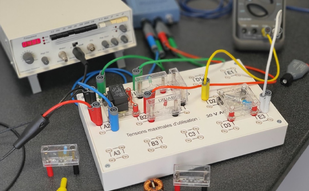 Настольный стенд с коммутационным полем (демоплата) для организации лабораторных работ, научных экспериментов и электротехнических тестов выполняемых при помощи навесных элементов (блоков) и внешних контрольных приборов.
