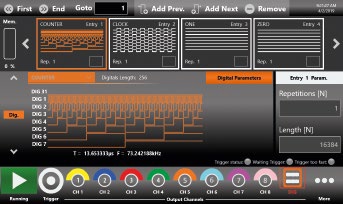 Технология переменного тактирования, реализованная в генераторе сигналов произвольной формы / цифровых паттернов, позволяет пользователю создавать сложные формы сигналов аналогового и цифрового паттерна, вставлять их в последовательность, применять циклы, переходы и условные ветвления. Цифровой выход, совмещенный и синхронизированный с аналоговыми выходными сигналами, представляет собой идеальный инструмент для поиска неисправностей и проверки цифровых разработок.