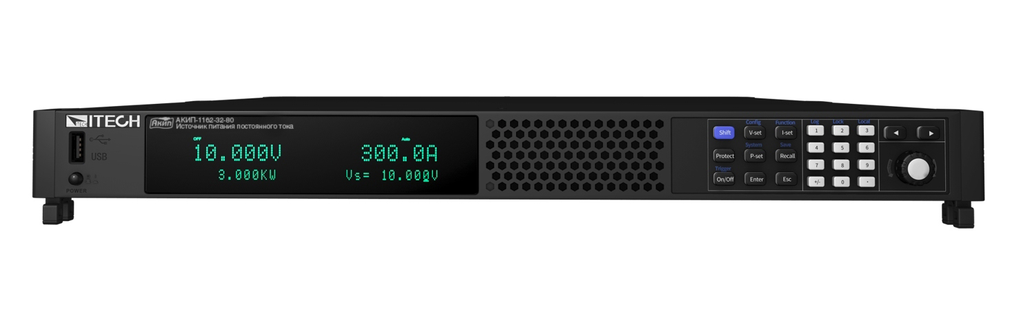 Серия АКИП-1162 представляет собой программируемый источник питания постоянного тока с одноканальным выходом. Модельный ряд включает 25 источников питания с различными номиналами тока, напряжения и мощности. Данную серию можно отнести к классу компактных источников питания, так как при малой занимаемой высоте в стандартной 19” стойке можно получить максимальные выходные параметры: