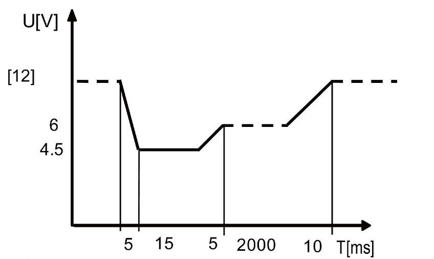 Для тестирования на соответствие стандарту DIN40839 в данной серии источников питания есть предустановленные формы сигналов с уровнем 12 В или 24 В. Данный тест позволяет проверить поведение тестируемого устройства во время и после проворачивания коленчатого вала. Этот профиль может воспроизводить кривую напряжения автомобильной сети электропитания в соответствии со стандартом DIN40839. Предустановленная форма, а в данном тесте это форма пускового напряжения, может быть изменена в зависимости от требований конечного пользователя. Также уровень сигнала может быть изменен в диапазоне от 8 В до 32 В.