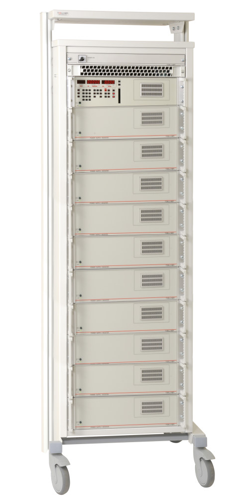 | Особенности | Прибор поставляется в 1 подкатном 19” шкафу, имеет 11-и блочное исполнение (управляющий модуль + 10 блоков усиления). Функция формирования сигнала произвольной формы. 3-фазное питание. Высокая скорость нарастания и спада Uвых (2 В/ мкс). Выход обратной связи “sense” для подключения удаленной нагрузки. Возможность импорта реальных сигналов из устройств хранения цифровых данных или систем регистрации информации. |