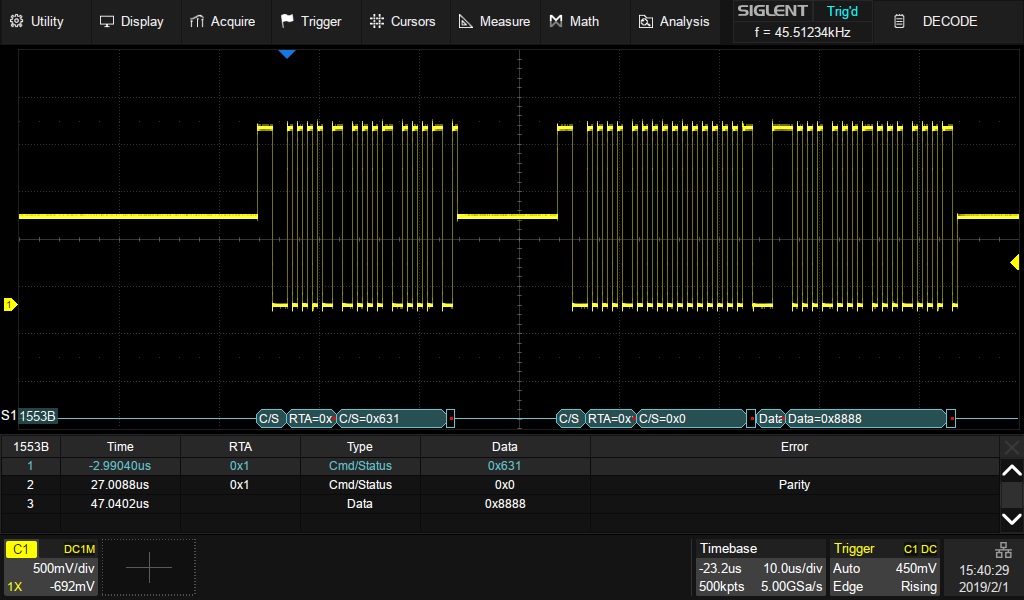 Опция SDS-5000X-MIL1553B