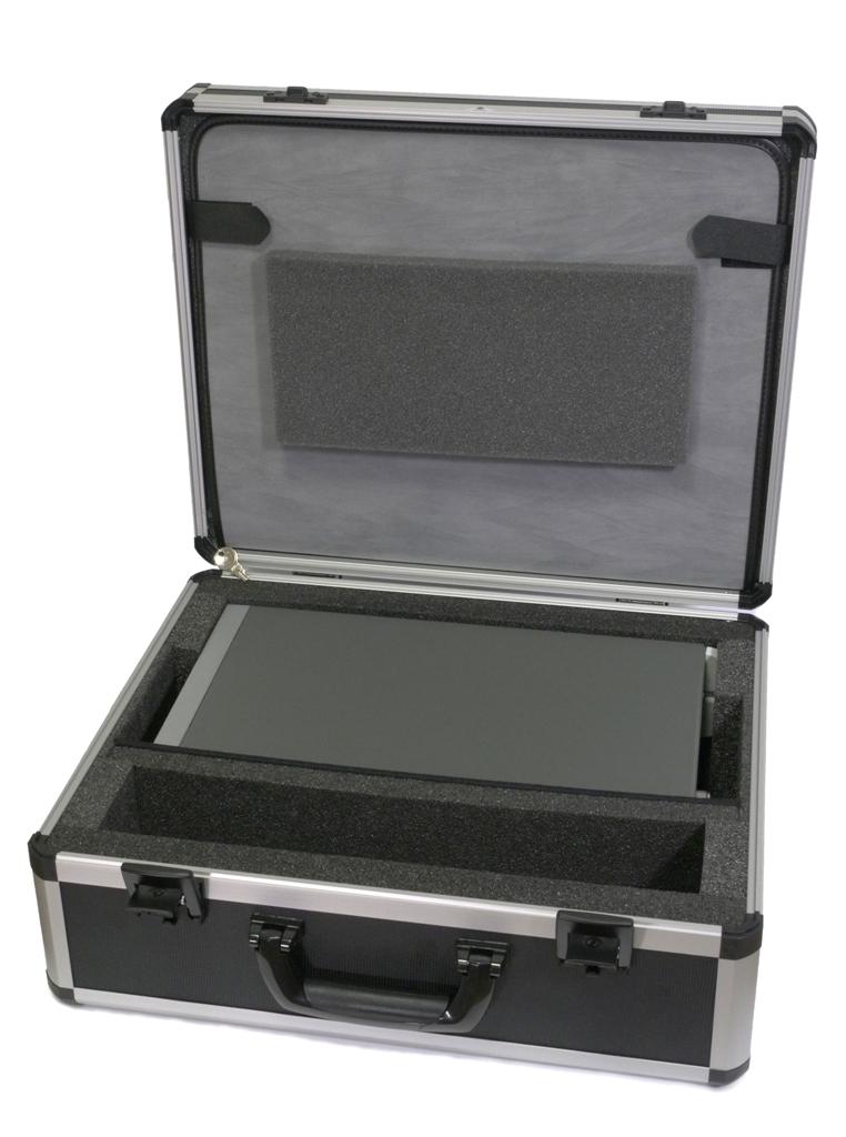 Внутреннее пространство (поролон) разделено на две части: ниша для устройства, меньший отсек для аксессуаров. Откидная планка под верхней крышкой позволяет хранить документы и мелкие предметы (компакт-диски и пр.).
