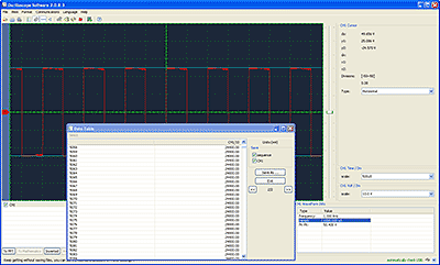 Интерфейсы USB, RS-232 и LAN расположенные на боковой панели необходимы для связи осциллографа с компьютером. Для связи осциллографа с компьютером применяется специализированное программное обеспечение DS-WAVE. Программное обеспечение позволяет производить передачу данных с осциллографа на компьютер: копию экрана осциллографа в виде BMP файла или форму сигнала. Так же имеется возможность включения режима непрерывной передачи информации, в данном режиме информация с осциллографа будет непрерывно, с частотой раз в несколько секунд, передаваться на компьютер, имитируя тем самым работу осциллографа на экране компьютера. Остановить автоматическую передачу можно в любое время из программы. К последнему захваченному кадру в программе можно применить курсорные измерения или математические функции, посмотреть спектр сигнала, изменить масштаб и уровень сигнала, а так же произвести сохранение данных в виде CSV файла для последующей обработки информации программными средствами.