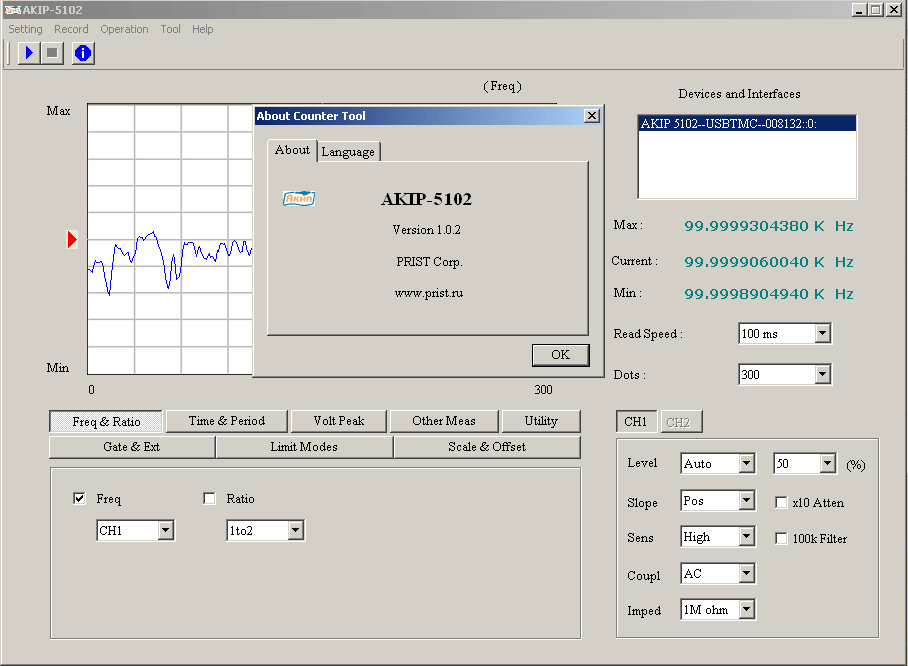 Рисунок 3. Интерфейс ПО АКИП-5102