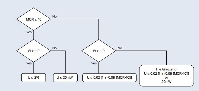 Измеритель GPM-78310 обеспечивает автоматический расчет этого параметра, также, как например это делает Hioki 3335, имеющий аналогичную функцию. Стандарт IEC/МЭК 62301 определяет значение показателя MCR в качестве некой реперной точки для оценки энергоэффективности электропитания. Допускается неопределенность измерения для значения MRC не более10. Основываясь на MCR и вычислении потребляемой мощности тестируемого объекта можно быстро понять, выполнение каких измерений далее не потребуется (см. рис. 4). Возможность такой оценки исследуемого устройства является показателем насколько тот или иной измеритель/ анализатор мощности соответствует критериям и нормам IEC 62301.