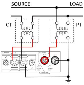 В случае измерительных приложений с большой мощностью пользователи могут задействовать коммутационные терминалы на задней панели для проведения «прямых» замеров U/I до 20 А/ 600 В. Кроме того, предусмотрена возможность использования внешних трансформаторов тока/ напряжения (CT current transformer/ PT potential transformer) для измерений при помощи задания в меню коэф. трансформации (1 ~ 9999). Это позволяет наблюдать на дисплее и учитывать в расчетах реальные значений входного напряжения или тока, т.е. без каких либо дополнительных вычислений.