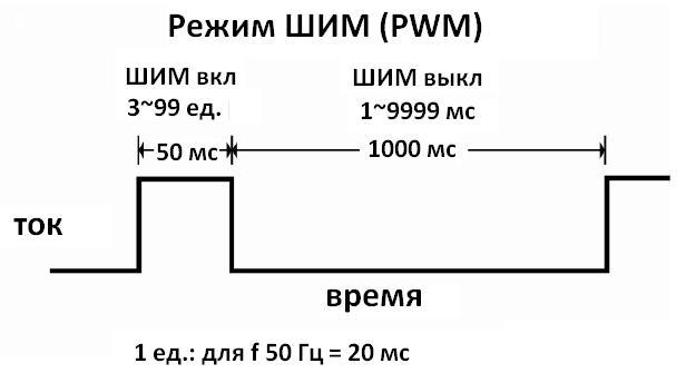 Выходной режим PWM с формированием токового ШИМ-сигнала (рис.5) наиболее предпочтителен для изменения сопротивления термочувствительных материалов. Он позволяет минимизировать ошибки, связанные с вариациями сопротивления из-за нагрева протекающим через него током в течение длительного времени. Режим выходного разнополярного тока (DC+ и DC-) является наиболее оптимальным для испытаний и измерений индуктивных компонентов.