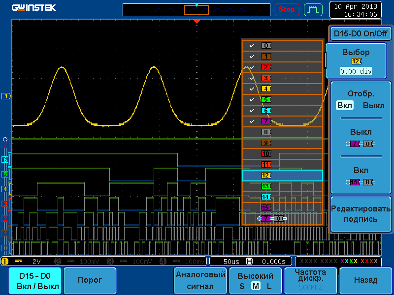 Рисунок 12. Экран осциллографа в режиме “Логического Анализатора” |