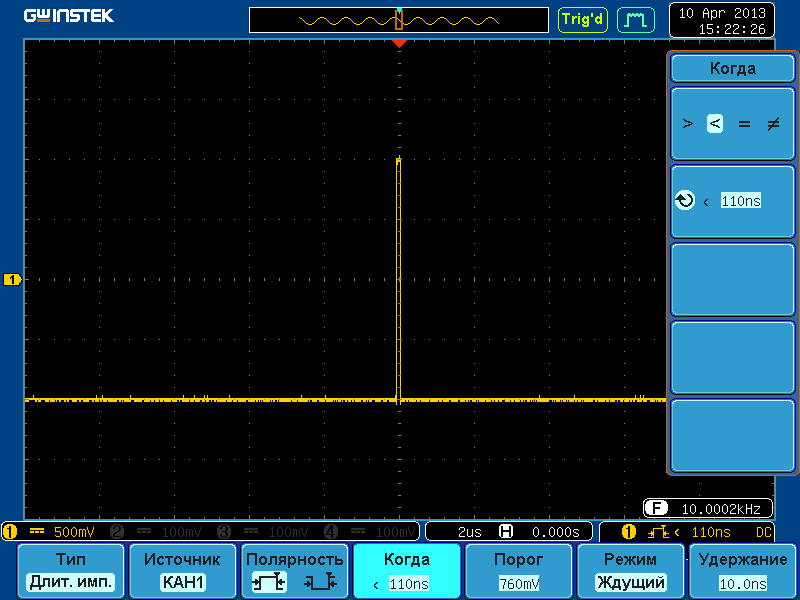 Рисунок 4. Пример использования режима поиска по условиям длительности импульса |