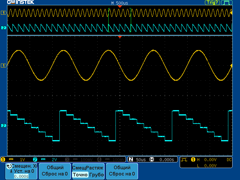 Рисунок 3. ЧМ сигнал на экране осциллографа |