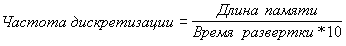 Из формулы [1] следует, что частота дискретизации прямо зависит от длины внутренней памяти при фиксированной развертке: