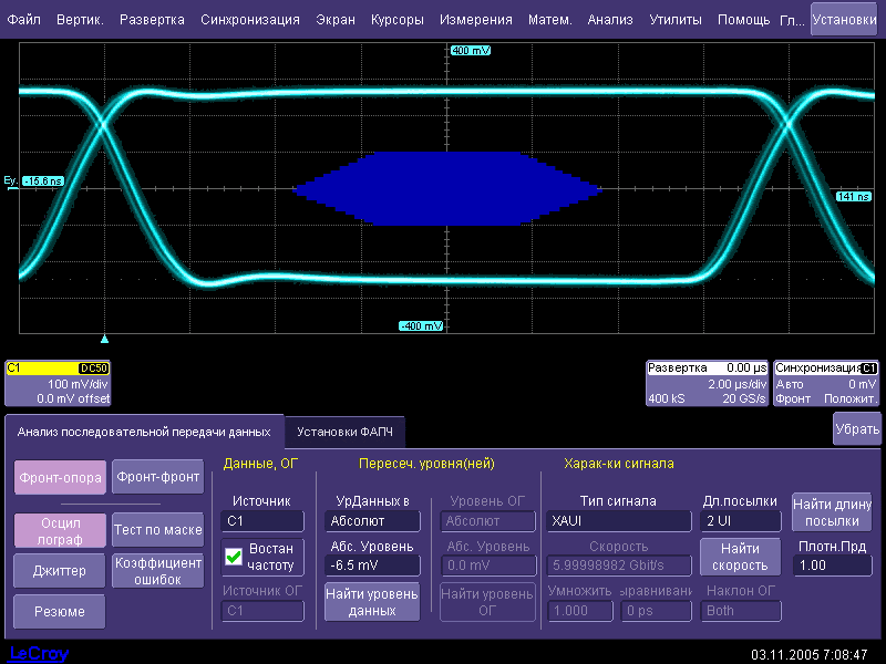 Рисунок 4. Глазковая диаграмма 6 Гбит/с псевдослучайной двоичной |