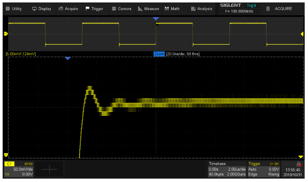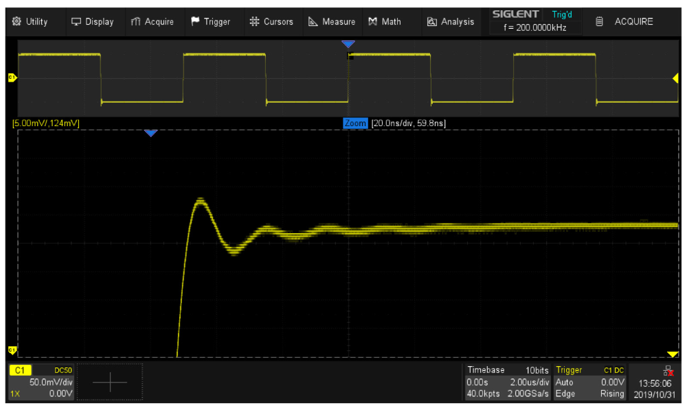 Осциллографы серии АКИП-4129 имеют минимальный в своем классе коэффициент отклонения (Коткл.) от 500 мкВ/дел, усовершенствованную аппаратную схему синхронизации, а также высокую стабильность запуска системы сбора данных с ультранизким уровнем собственного джиттера.