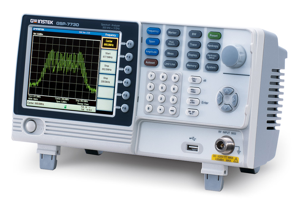 Модельный ряд анализаторов спектра Good Will Instek пополнился новой портативной моделью GSP-7730 в диапазоне до 3 ГГц. По своим параметрам и цене новый анализатор спектра относится к приборам бюджетного класса. Разработчики сделали упор на минимизацию размеров и массы прибора (296×13×105, вес 2,2 кг). Он легко уместится на столе учебной лаборатории, на рабочем месте ремонтника или настройщика. Прибор обладает высококонтрастным большим ЖК-дисплеем с разрешением 640×480.