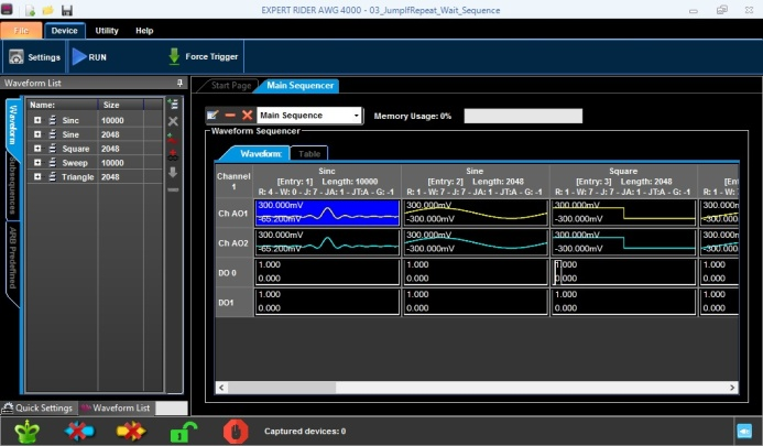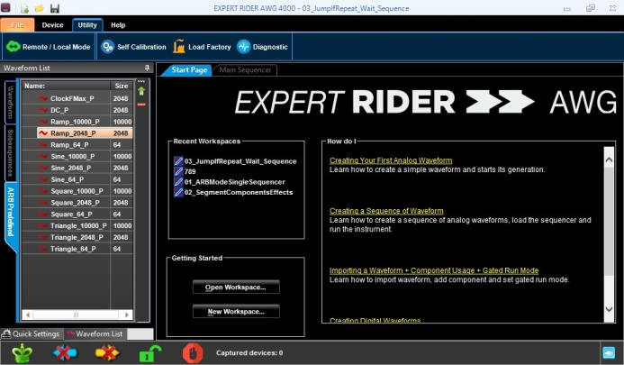 С помощью пользовательского интерфейса Expert Rider пользователи могут использовать все функции режима СПФ: формирования произвольного сигнала из различных сегментов (1... 16384), использование цифровых шаблонов и формирования последовательностей с выбором числа повторений, применение циклов и переходов между сегментами. Для более удобной работы имеется возможность подключения внешнего монитора.