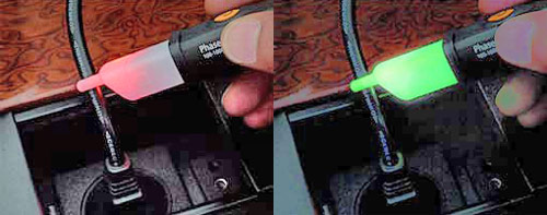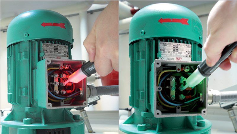 Визуализация положительного результата отображается при тестировании зелёным свечением индикатора. В случае обнаружения ошибки в последовательности чередования фаз (направлении вращения) – отображается красное свечение и включается предупредительный зуммер.