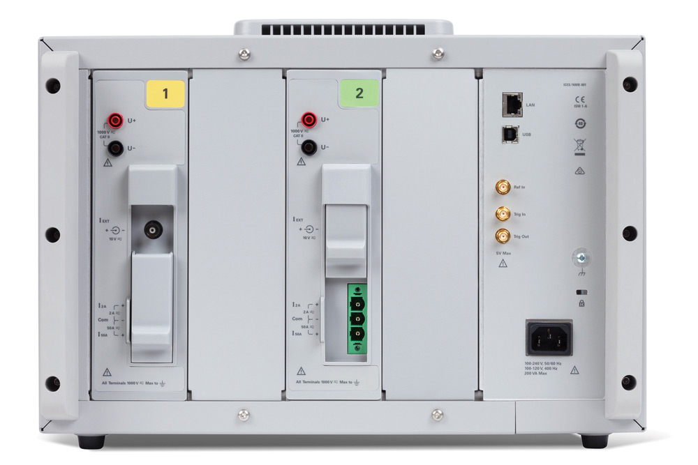 Благодаря входам с гальванической развязкой до 1000 В среднеквадратичного значения (категории II) и возможности их гибкой конфигурации в широких пределах анализатор мощности IntegraVision позволяет инженерам использовать самые различные тестовые сценарии. В стандартной комплектации приборы оснащены входами для внешних датчиков тока, а также встроенными входами для измерения постоянного тока 2 А (СКЗ) и 50 А (СКЗ) при подключении тестируемого устройства напрямую к анализатору. Входы для внешних датчиков поддерживают использование токовых пробников и преобразователей с выходным сигналом до 10 В на полную шкалу.