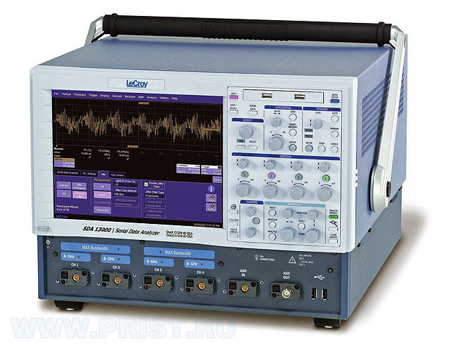 Новинка одновременно обеспечивает широкую полосу пропускания до 13 ГГц для осциллографов реального времени, максимальную частоту дискретизации 40 ГГц и большой объём памяти (до 100 Мб). Четырёхканальный анализатор реального времени выполнен на основе самой передовой цифровой осциллографической платформе, поэтому SDA 13000 имеет мощные возможности по анализу потоков, которыми отличается вся серия анализаторов SDA от LeCroy. Это в первую очередь относится к наблюдению и исследованию электрических сигналов потоков последовательных данных систем передач, которые работают тактовых частотах близких к максимальным (на сегодняшний день).