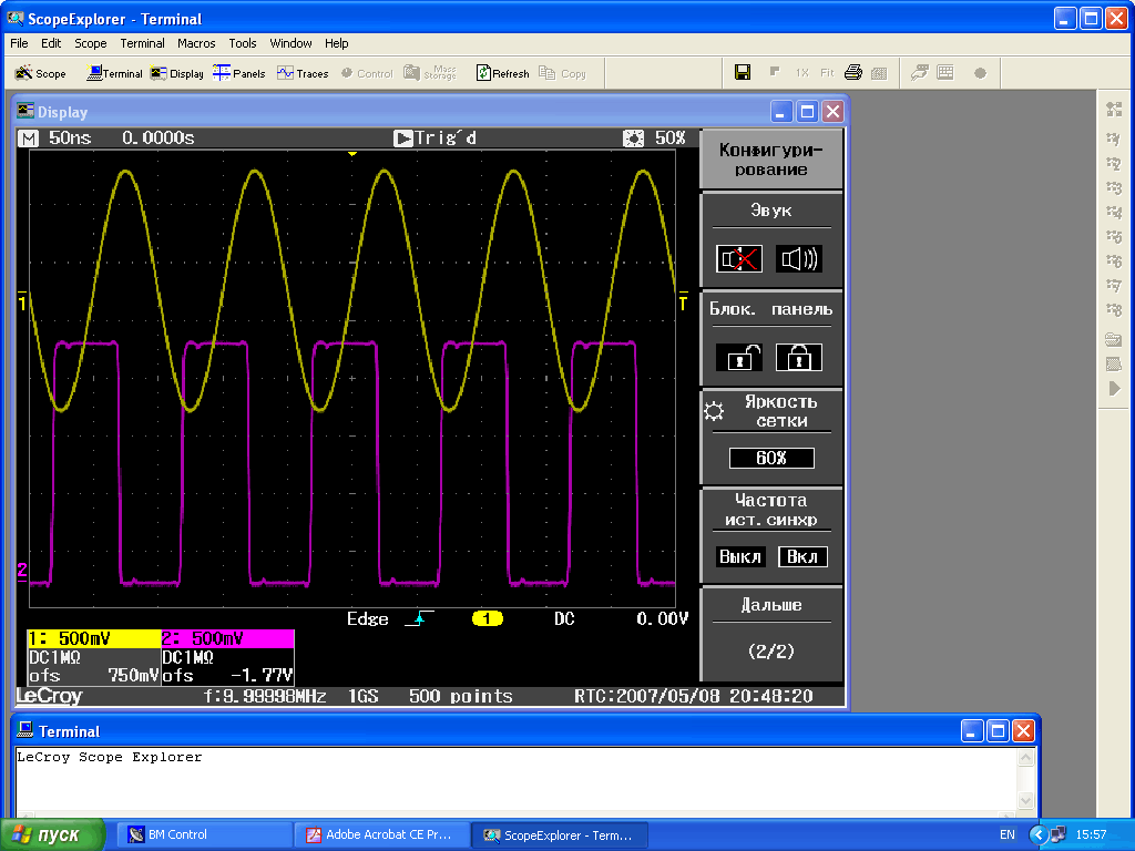 - Отправка команд управления осциллографом через терминальное окно. Превосходно подходит для изучения возможностей удалённого управления осциллографом при создании собственных инструментов на основе ActiveDSO.