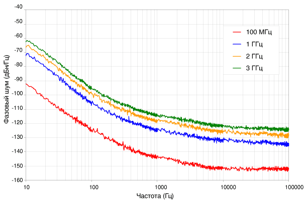 - Минимальные фазовые шумы (<-151 дБ/Гц, отстройка 10 кГц)