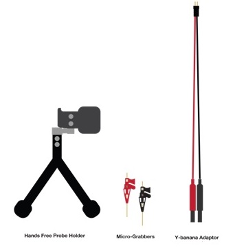 Комплект аксессуаров для серии DL-HCM включает держатель дифференциального пробника (подставка), зажимы для микросхем (2 шт), Y-образный соединительный адаптер (под «банан») |