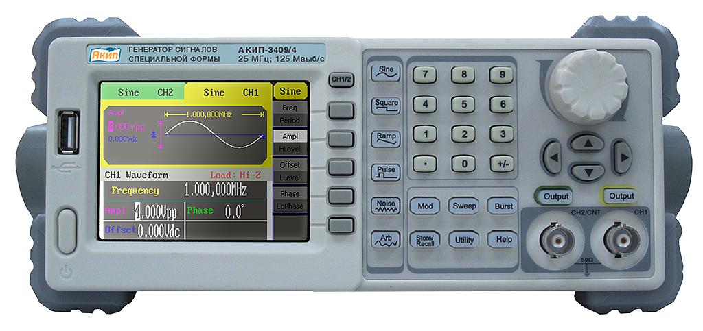 Особенностью данной серии является наличие в генераторах АКИП-3409 двух полностью независимых выходных каналов, что обеспечивает возможность генерации совершено произвольных сигналов (по частоте, амплитуде и форме). Генераторы имеют переключаемое выходное сопротивление 1 МОм/ 50 Ом для обеспечения возможности подключения к различным трактам. Новинки используют технологию прямого цифрового синтеза (DDS), которая позволяет формировать точные, стабильные и неискаженные по форме сигналы для широкого круга измерительных приложений.