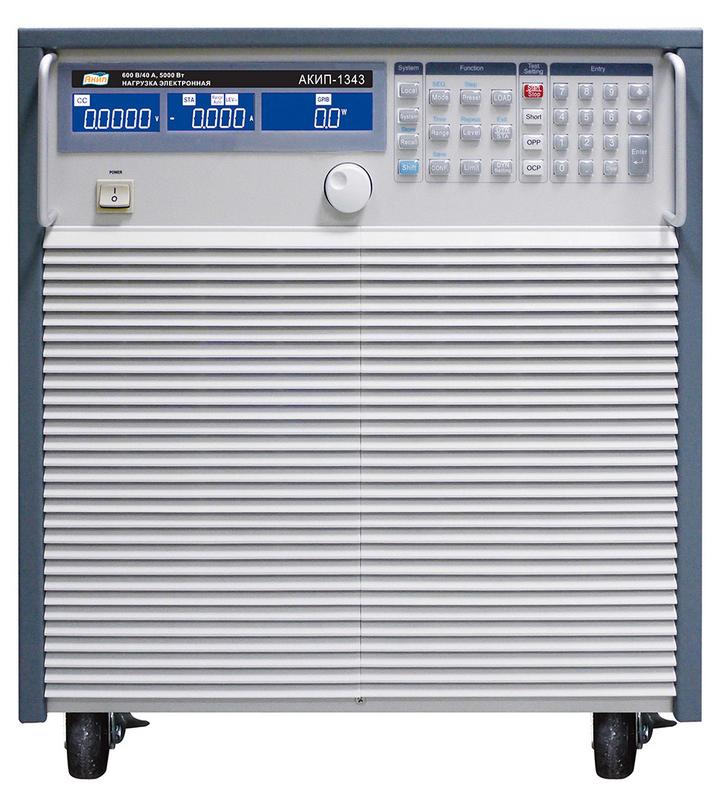 Нагрузка АКИП-1342 имеет моноблочное настольное исполнение (состоит из одного блока включающего органы управления и нагрузочные элементы). Модель АКИП-1343 состоит из основного управляющего блока и секций нагрузки, смонтированных в подкатном шкафу.