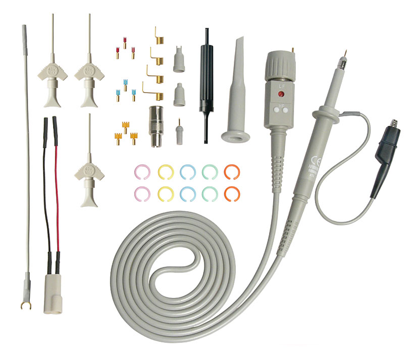 Разноцветные зажимы-идентификаторы канала (полукольца) облегчают визуальное определение пробника в подключаемых цепях и идентификацию других делителей расположенных близко от точки многоканальных измерений.