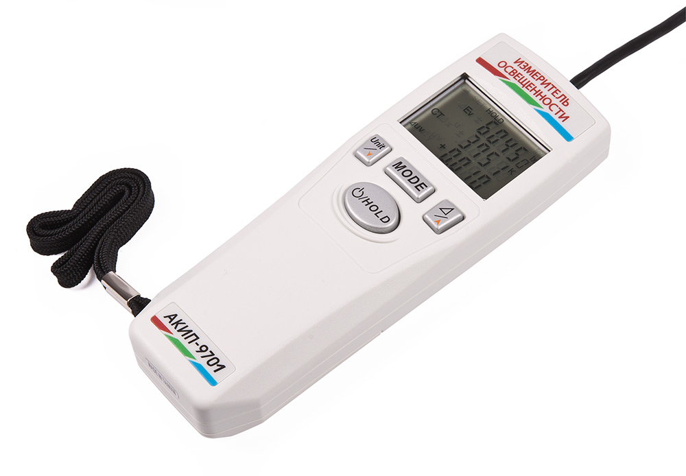 Измеритель представляет собой компактный люксметр с батарейным питанием и выносным сенсором-датчиком. АКИП-9701 может использоваться для измерения уровня освещенности, обусловленной естественным природным и искусственным светом, источники которого размещены произвольно относительно светоприемника.