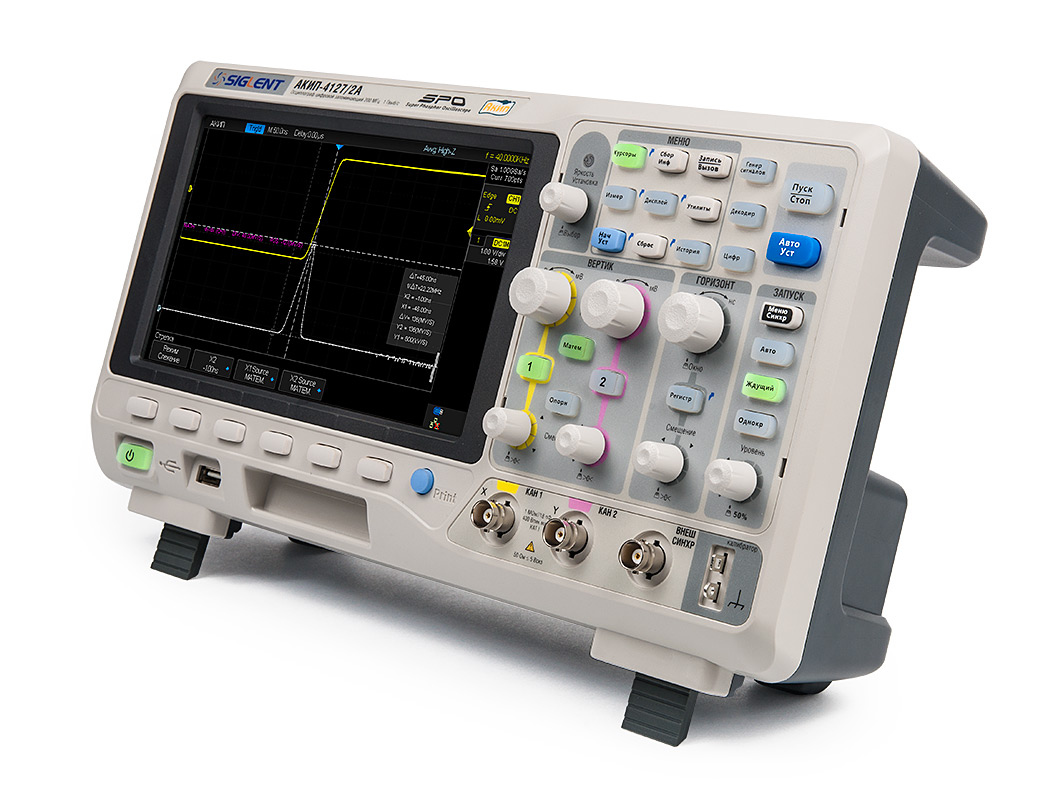 Серия АКИП-4127 относится к осциллографам эконом-класса, однако при этом обладает техническими новациями старших линеек, например, технологией SPO (Super Phosphor Oscilloscope). Технология SPO, реализующая скорость захвата до 60.000 осциллограмм в секунду и 256 уровней интенсивности свечения луча (обеспечивает при отображении яркостную или цветовую градацию частоты разверток в зависимости от частоты их повторения), позволяет обнаружить редкие события, аномалии и вариации в сигнале (модуляция яркости). Как результат - максимально достоверное отображение сигнала на экране.