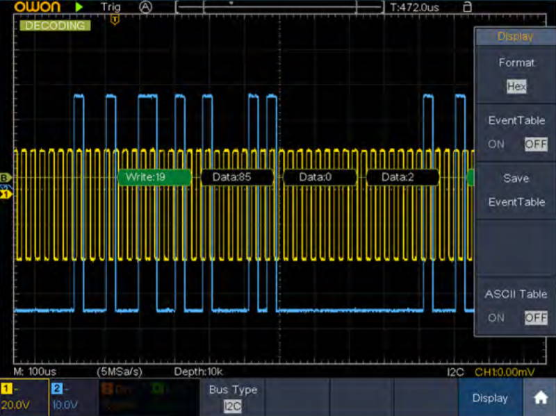 Поддержка функции декодирования последовательных данных шин I2C, SPI, RS232/UART, CAN