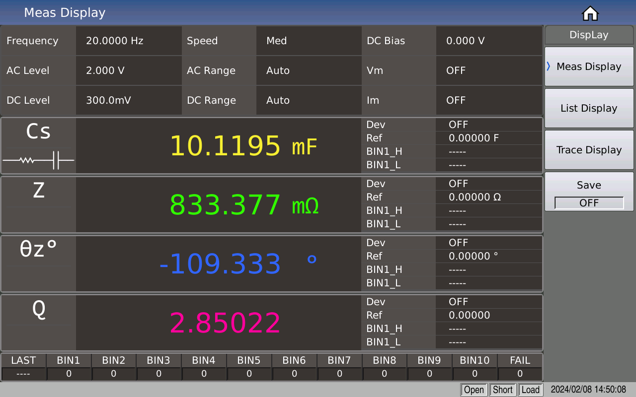 Новые измерители иммитанса обеспечивают тестирование и анализ 18 параметров: комплексное сопротивление на переменном токе (R, Z, X), сопротивление на постоянном токе (RDC), ЭПС (ESR), проводимость (G, Y, B), ёмкость (Сs/ Cs), индуктивность (Ls/ Ls), тангенс угла потерь (D), добротность (Q), фазовый угол °/rad (q).