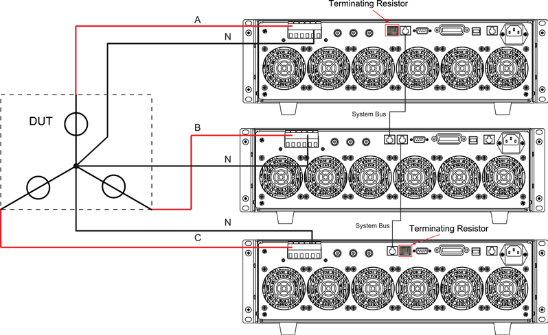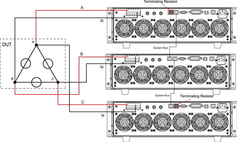 Важным преимуществом нагрузок серии АКИП-1373 является возможность коммутации нескольких однотипных нагрузок по схеме «звезда» или «треугольник» для тестирования трехфазных сетей переменного электропитания. При этом каждой нагрузке в схеме испытаний назначается «своя» нагружаемая фаза. Конструкцией предусмотрена системная шина для внутренней синхронизации в моделируемом агрегатном устройстве.