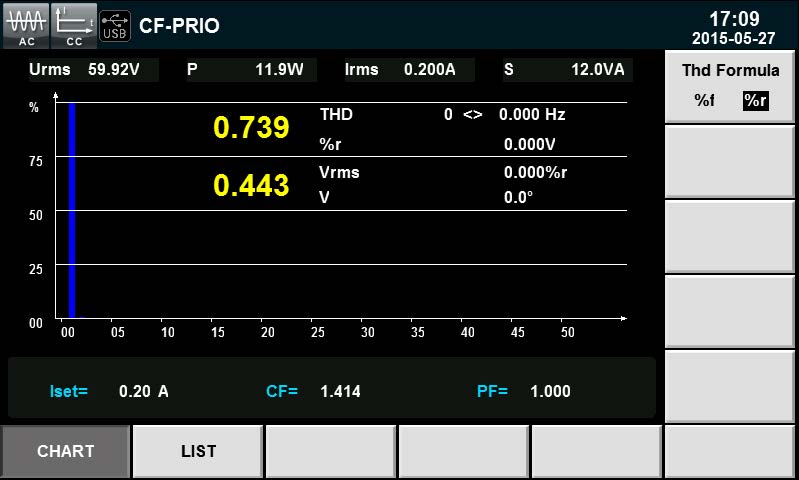Особенность серии АКИП-1373 заключается в наличии 2-х режимов: переменного тока (в диапазоне частот: 45…450 Гц) и постоянного тока при отборе электрической мощности. Для удобства управления и наблюдения за измерениями использован цветной графический ЖК-дисплей (диагональ 18 см). Предусмотрена внутренняя память на 10 ячеек, что позволяет выполнять запись и вызов профилей настроек. Для тестирования устройств электропитания нагрузка имеет широкий перечень измерительных функций и режимов, в т.ч. экранное меню «встроенный осциллограф» для отображения 2-х входных сигналов (ток / напряжение), обеспечение на дисплее одновременной индикации до 12 параметров. Новинка оснащена режимом измерения и анализа гармоник напряжения (до 50-й), функцией построения гистограмм контролируемого параметра.
