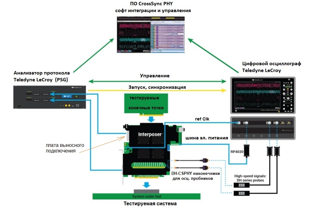 Предлагаемый клиентам новый тип интерпозера имеет задачей расширить адресное предложение для инженеров разработчиков устройств высокоскоростной передачи данных с целью полноты анализа структуры сигналов. Сегодня ведущие разработчики, специалисты по высокоскоростной последовательной передаче, наблюдают, анализируют, ведут отладку и создают устройства PCI Express 5.0 первого поколения для хранения данных, создания сетей и других приложений. Проблемы создания таких устройств и их функциональной совместимости часто возникают в электрической области, в вопросе взаимодействия протоколов или их комбинации. Технология CrossSync PHY предоставляет инженерам полную картину при тестировании интерфейса стандарта PCIe. Комбинация мощного осциллографа и прикладного анализатора протоколов позволила просматривать, управлять и анализировать в единой программной оболочке захваченные осциллограммы и графики анализатора в коррелированном по времени формате, как в единой системе. На сегодняшний день эти уникальные ресурсы анализа обеспечивает только компания Teledyne LeCroy. Они позволяют быстро выявлять проблемы на «живой» линии с реальным сигналом (в «прямом эфире»), ускоряя время выхода на рынок готовых устройств и новых изделий на их базе. Все интерпозеры с поддержкой CrossSync PHY работают с анализаторами протокола Teledyne LeCroy PCI Express (серия Summit T54 Protocol Analyzer ) и осциллографами Teledyne LeCroy LabMaster и WaveMaster®.
