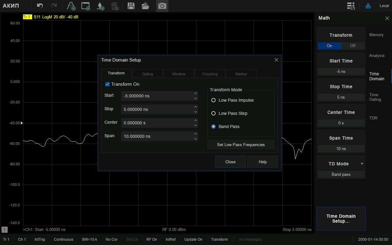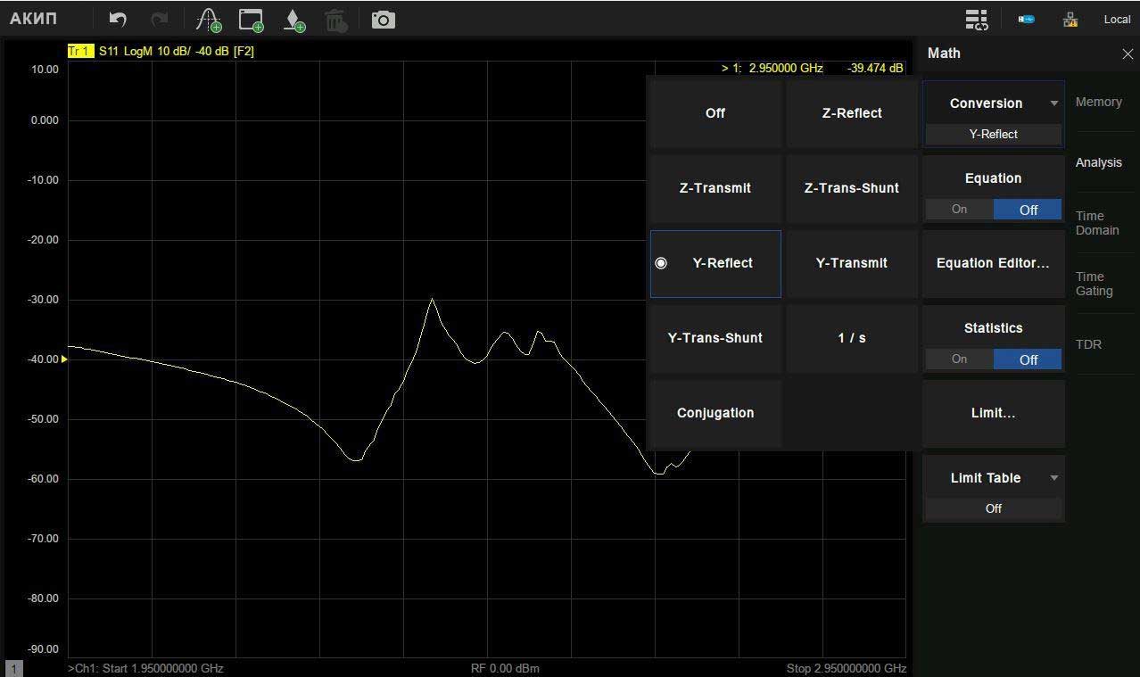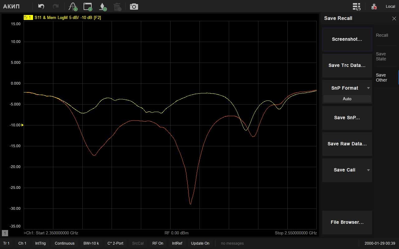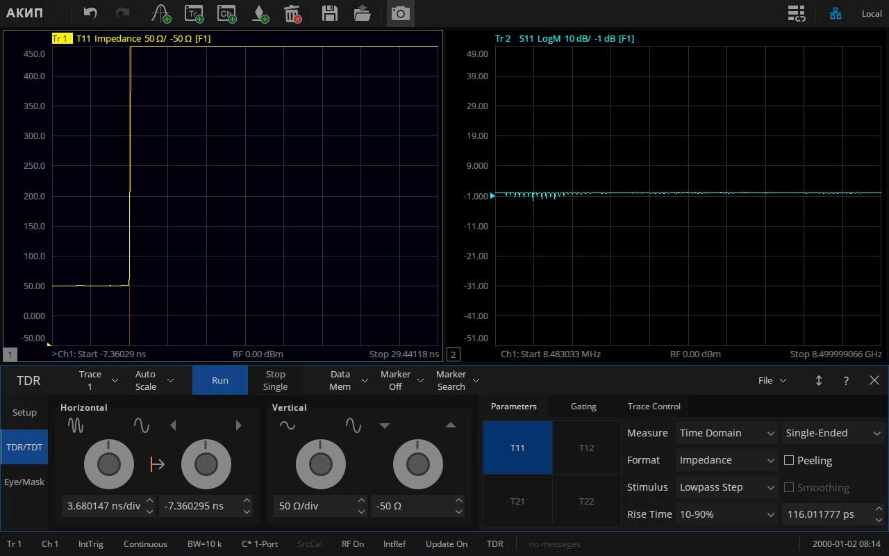 - Различные виды калибровки: простая, расширенная, полная (от одного до четырех портов), TRL-калибровка (SOLT, SOLR, TRL)